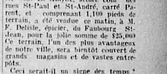 Importante transaction à Québec [3] Ce serait le commencement des grands travaux de construction d’une gare centrale. Dépêche spéciale Québec, 17 - (...)