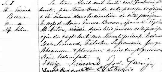 Acte d’inhumation de Emma Brown