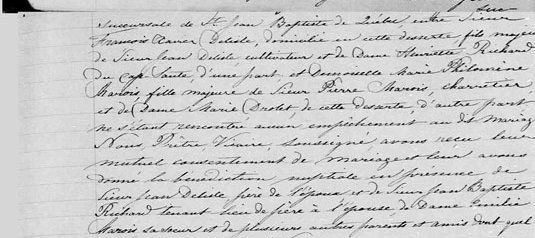 Acte de mariage François Delisle et Philomène Marois
