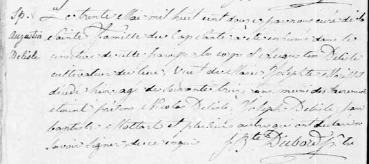 Acte d’inhumation Augustin Delisle