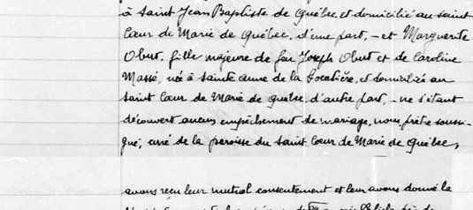 Le trois juin mil neuf cent vingt neuf vu la dispense de deux bans accordée par son Éminence le Cardinal Rouleau en date du vingt-deuxième jour du (...)