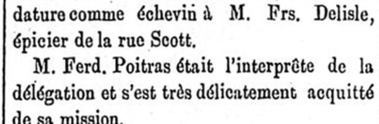 M. Ferd. Poitras était l’interprête (sic) de la délégation et s’est très délicatement acquitté de sa mission.
