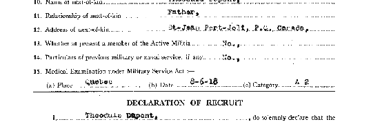 Papiers d’enrôlement dans l’armée canadienne de Théodule Dupont